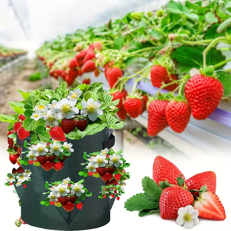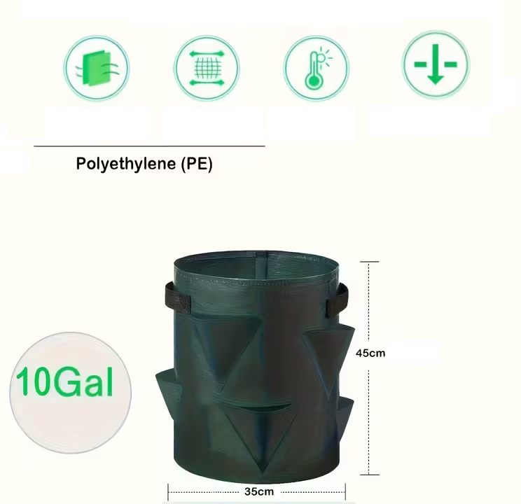 Denne jordbærpose har en kapacitet på 37,85 liter og er lavet af non-woven stof af høj kvalitet. Den kombinerer rustik stil med praktisk design, hvilket giver den et naturligt udseende og en holdbar konstruktion.